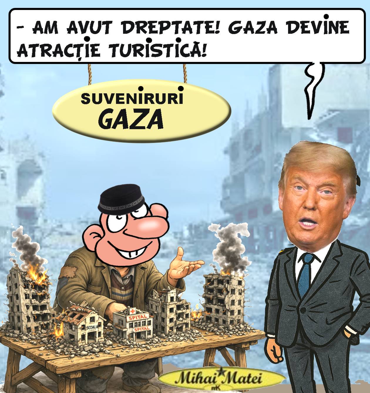 Becali s-a oferit să fie mediator între România și Trump, zicând că „vorbește fluent limba măscăricilor” – adică poate negocia prețuri la oi, terenuri și poate și la arme. „Dacă Trump vrea F-16, îi dau pe ale mele de la ferma din Pipera!”Genial! Becali, singurul român care poate vorbi cu Trump fără translator – pentru că amândoi gândesc în emoji-uri cu dolari și oi. Următoarea întâlnire: la Hanul lui Păcală, cu mămăligă și deal pe masă. România devine broker internațional de showbiz politic!