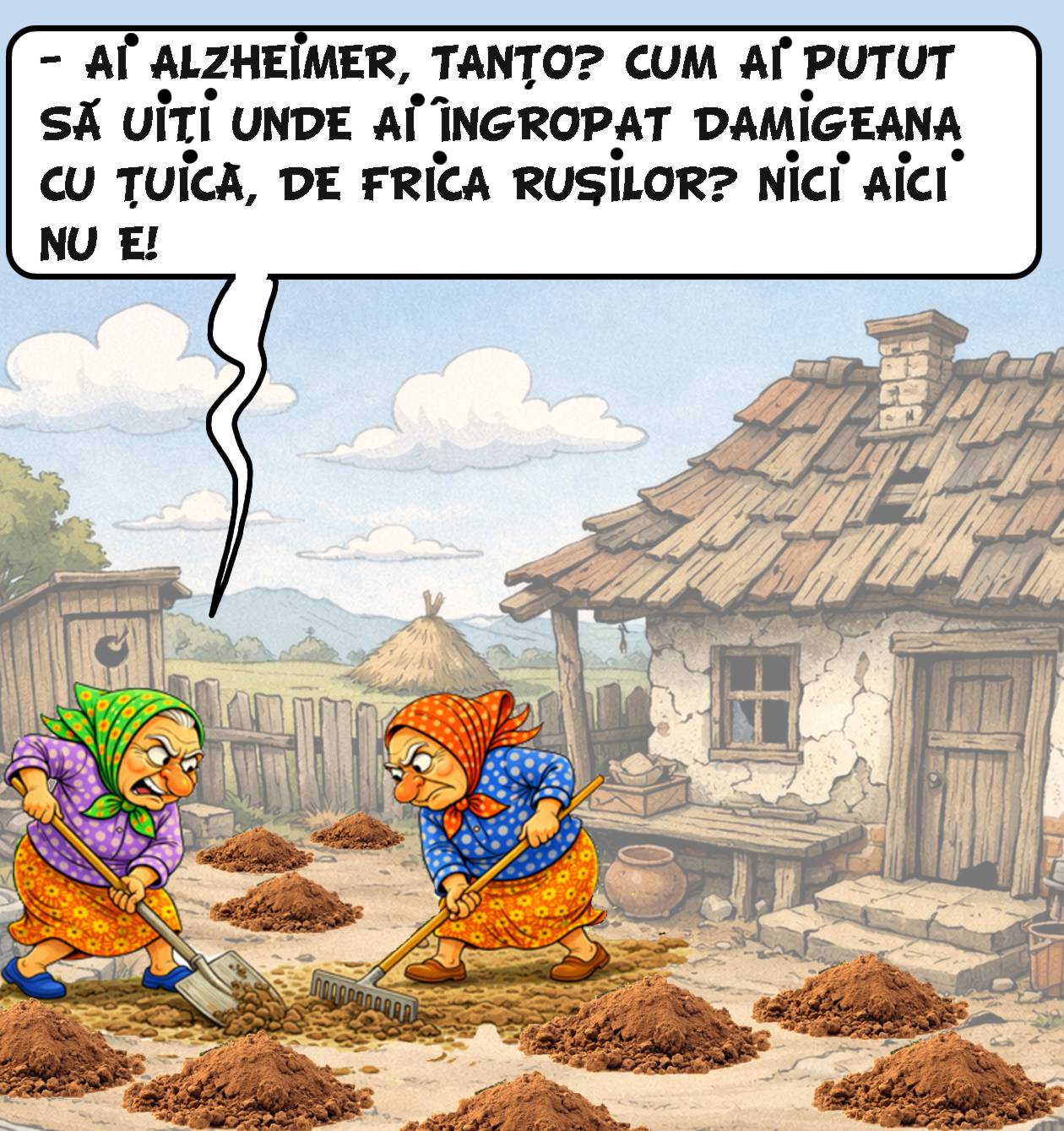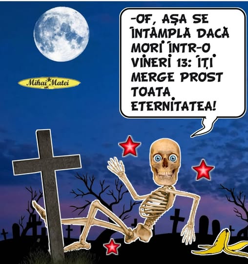 Intr-o seara,un om se plimba prin cimitir.Nefiind atent, cade intr-o groapa. Omul incepe sa strige: – Ajutor!!! – Ajutooor! – Imi este frig! La care,apare un betiv si acoperind groapa spune: – Pai daca te-ai dezvelit!