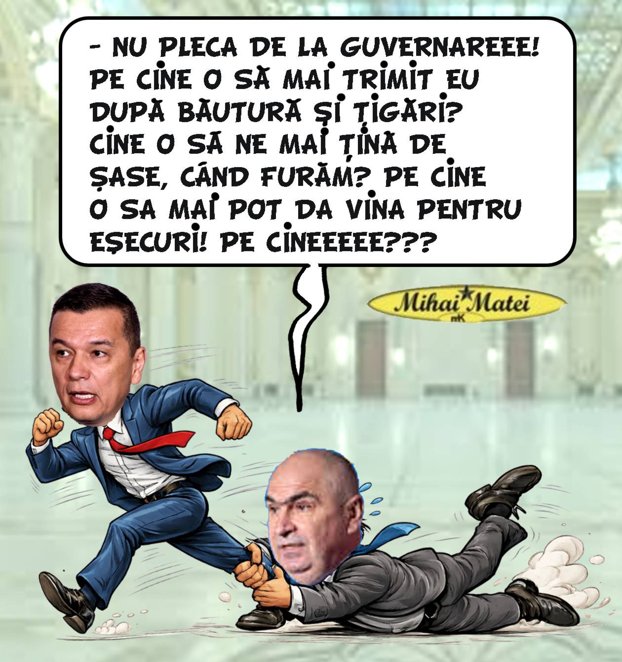 Sorin Grindeanu a replicat dur la declaraţia lui Ilie Bolojan despre „şobolanii din cămară”. El a spus că a vinde companii profitabile precum CEC Bank, Romgaz, Transgaz, Portul Constanţa sau Transelectrica înseamnă „a fura toată cămara”.Grindeanu a transformat disputa într-o lecţie de economie de cămară: statul are dulapul plin cu bunătăţi profitabile şi Bolojan vrea să le vândă. Metafora cu şobolanii a prins viaţă – acum toţi se ceartă cine e şobolanul şi cine păzeşte cămara. Noi, românii, ştim un singur lucru: indiferent cine câştigă, cămara tot goală rămâne.